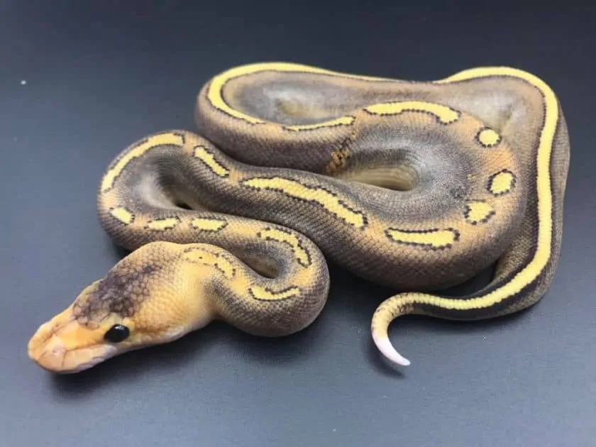 Pinstripe ball pythons are a very eye-catching morph. They exhibit relatively typical coloration, but they have very reduced dark pattern elements, which creates the overall impression of a yellow or straw-colored snake, with thin, dark lines and markings.