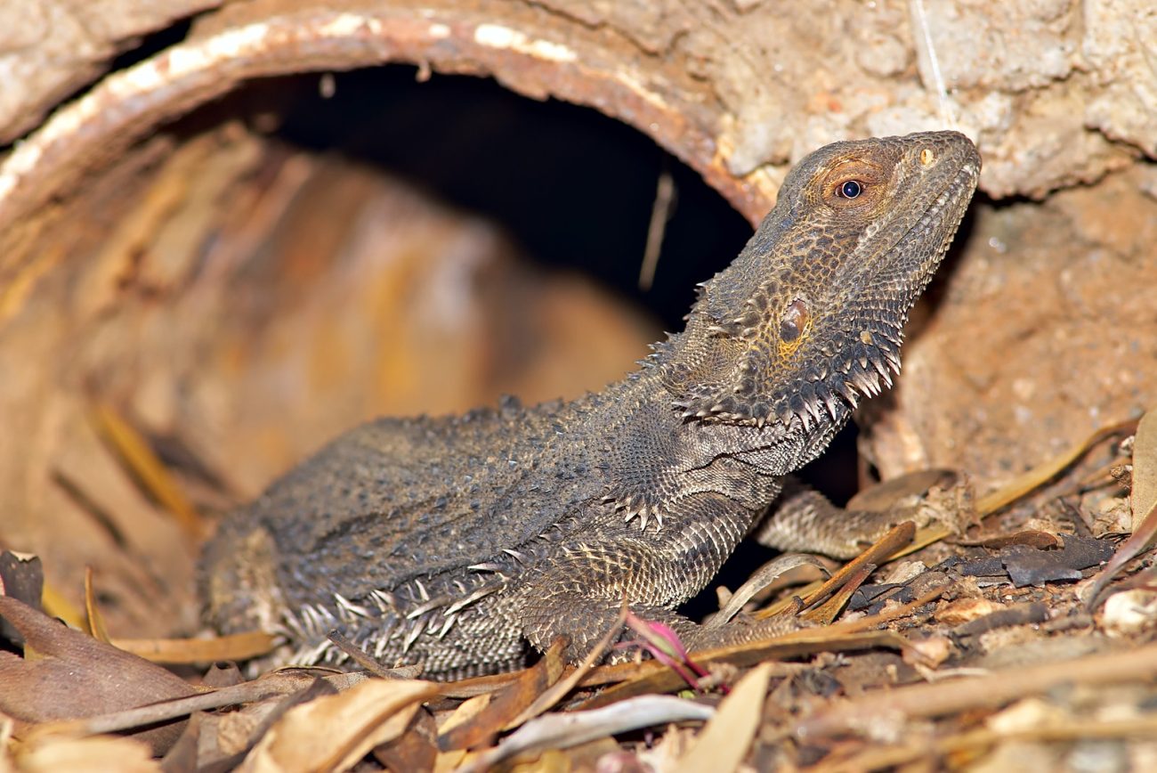 For hollow logs or other tube-like hides, leave both openings accessible and open. Beardies won’t be able to turn around in such a narrow space, so they have to go through to get out.