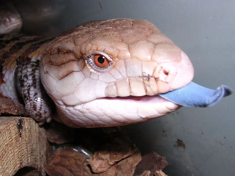 General Description and Appearance: Blue-tongued skinks are special because of their blue tongues. They are strong, land-living reptiles; their heads are wide and triangular, and their skin is smooth and scaly. They come in different patterns and colors.